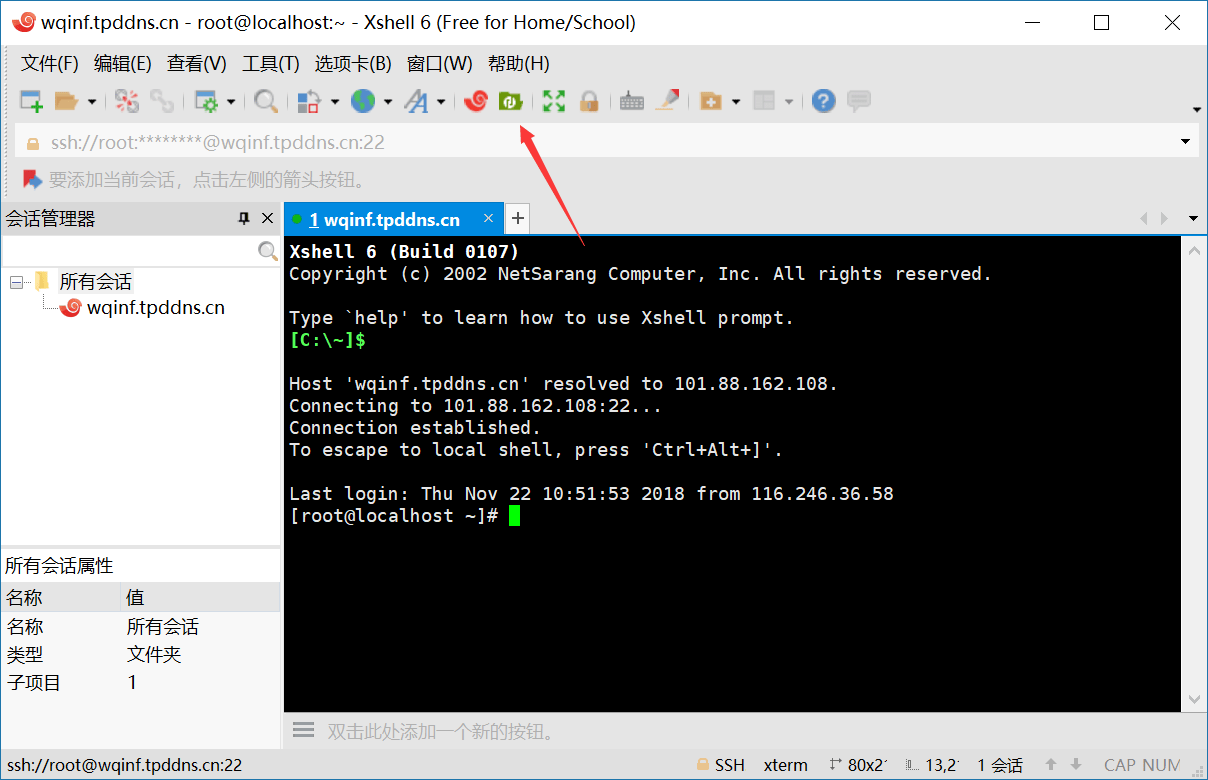 点击之后不用输入密码,直接管理服务器文件,当然我们也可以先登录Xftp,然后点击Xshell图标切换管理Xshell: