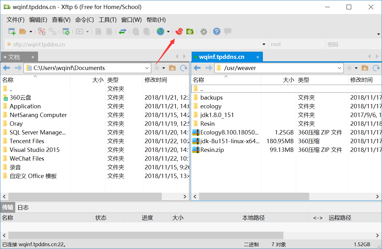Xftp的下载与安装请参考Xshell的下载与安装使用,过程基本一致。当我们使用Xshell连接服务器之后,我们可以通过点击顶部的Xftp图标,直接管理服务器上的文件。