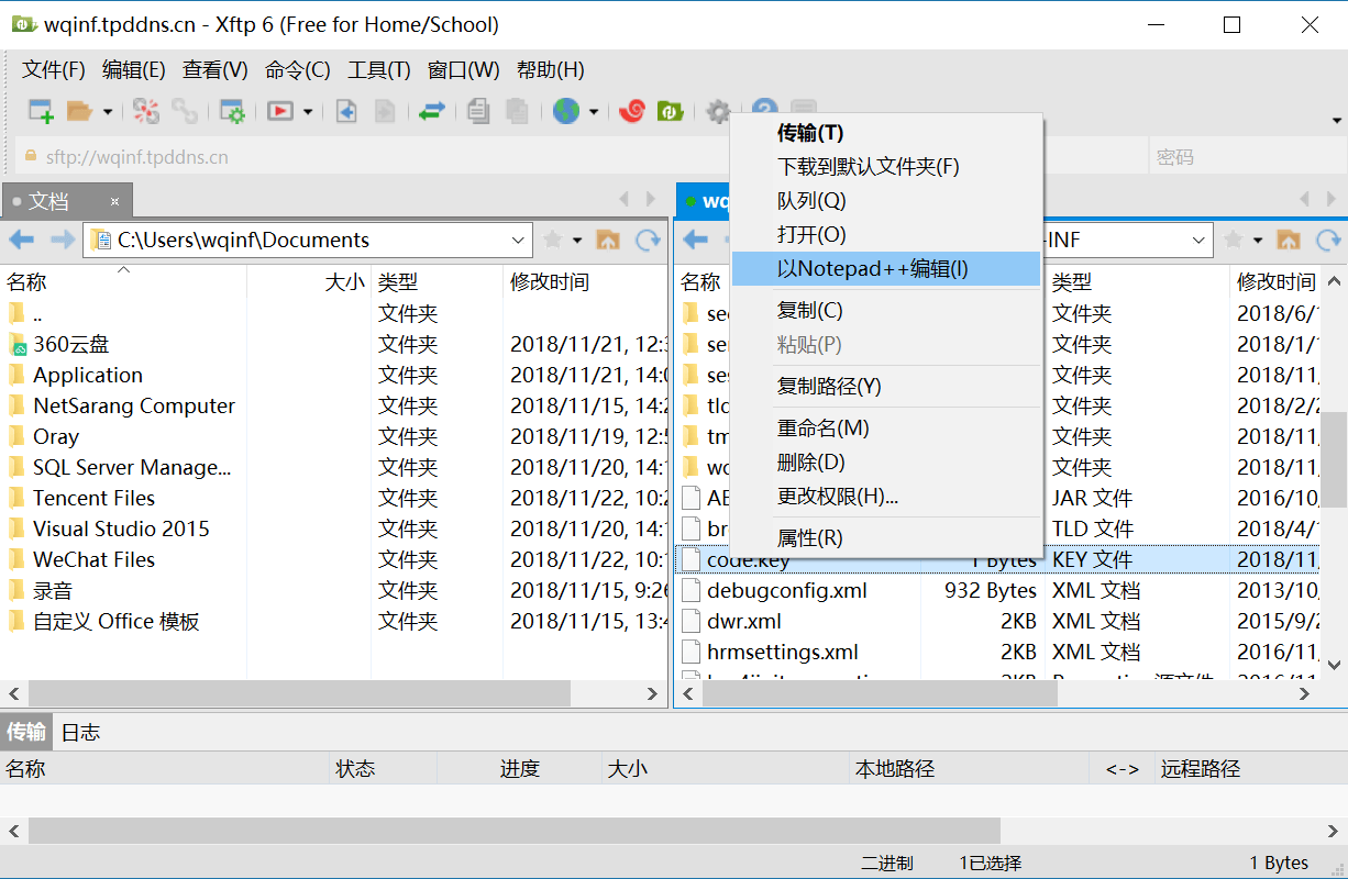 当然, Xftp也是一款专业的FTP管理软件,比起同类软件更轻量且易于管理,支持FTP、SFTP协议,支持自定义文本编辑器程序(如配合Notepad++):