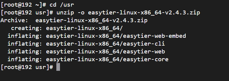 然后cd easytier-linux-x86_64进入该目录,然后先不要急着启动服务,我们接下来需要将其注册为服务并设置开机自动启动,这样以后用起来更方便。